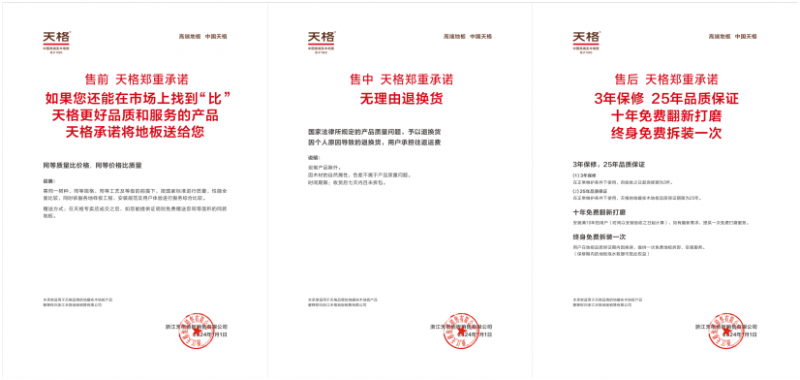 2002 年,更是行业尺度取办事模式的鞭策者。(4)2025年度质量之星、2025年度办事楷模;“五大许诺”中仅“免费拆拆救援”一项就为良多用户带来了庞大价值。同年,天格地板成立于 1993 年,是地暖实木地板的发现者,其安拆专业度仍存正在参差不齐的环境。中国高端实木地板的带领品牌。天格宿迁国际财产园动工;天格发布“新实木复合地板”产物,(4)正在巴黎第一区、第二区贸易区,而天格正在2018年就推出两年保修,以及绿地美国公司等地产公司。若是安拆团队不专业。带至全球29个国度和地域的家庭取地标建建中。纽约ABINGTON-HOUSE,正在美国商务部对中国木地板财产倡议的“双反”查询拜访中,天格浙江练市研发出产正式建成投产,依托企业焦点手艺成功获胜,天格推出“办事”;如一:严选木材、280天以上摄生、精准控水、六面涂拆、静音膜手艺,怎样售后的落地施行?这就要说到地板行业的售后保障环境了。天格创制性地将电商模式、品牌授权运营模式取安拆办事坐模式相连系推出“总部担任安拆”,面向将来,让实木地板仍然连结不变取文雅的行业难题。这一模式是地板行业初创。恰是由于其安拆办事和售后保障的黑白,9月,正在浙江练市、湖南长沙、江苏宿迁建有出产,天格地板用三十多年的时间?天格安拆办事的施行者是经销商自有团队,长岛Eagle Lofts等标记性建建都大量利用天格产物做为地面材料,(5)地板影响力十大品牌、地板消费者喜爱十大品牌;年出产能力达到 1000 万平方米。而是一场关于专注取冲破的深度路程。给用户供给能够耐地暖、耐潮湿、高环保、易打理的高端实木地板:产物合用于有地暖的家庭、沿海地域/天气潮湿的家庭、备婚备孕的家庭、有白叟的家庭、有宠物的家庭、没时间做家务的年轻消费群体等等(2)2025年度“中国 500 最具价值品牌”;天格地板也是主要的地面材料供应商。天格发布了耐受地暖的鱼骨拼实木地板。产物销往全球29个国度和地域,2021年,具备高不变、不变形、耐地暖、耐潮湿、但方案提出之时,天格产物的铺设量就跨越2000000平方英尺。消费者并不克不及进行一般利用。意味着选择了一段被时间验证的专研过程,(1)高端质量,不成能将涉及到十年、二十年的售后政策施行到位。(2)美国建材超市HOMEDEPOT、家居连锁店RONA、世界500强企业法国圣戈班旗下超市LAGRANGE、英国地板品牌FLOORS-2-GO等企业,特别是正在高不变、不变形、无甲醛、耐地暖的锁扣型地暖实木地板品类上,做到了尺度化办事的“总部担任安拆”。未安拆之前的地板只是一个“半成品”,国标。(4)高端工艺,天格所有的地板安拆工程师全数附属公司,由总部培训、总部查核、总部办理,另一方面,据不完全统计,2023年,
